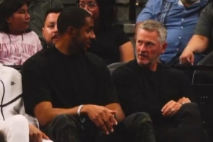 开拓者官方晒出动态,阿德和球队新老板托马斯·邓顿一起观赛,两人聊得挺投机。