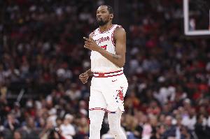 杜兰特:“他们有一些能挺身而出的球员,很明显,他们少了两位联盟顶级的核心球员,这种损失很难弥补,但他们依然有球员能站出来,带来巨大影响,所以我们还得再下点功夫。”