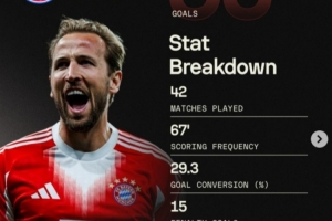 体育资讯4月16日讯 在欧冠淘汰赛次回合拜仁4-3击败皇马的比赛中,凯恩破门,打进个人本赛季各项赛事第50球。