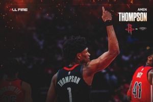 赛后火箭官方发布杜兰特和阿门·汤普森本场数据海报。